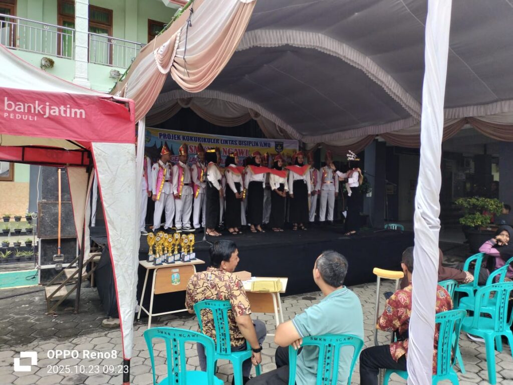 NGAWI – SMK Negeri 1 Ngawi telah sukses menyelenggarakan acara “Gelar Lagu dan Kuliner Nusantara” pada Kamis, 23 Oktober 2025. Acara yang digelar di Halaman SMKN 1 Ngawi ini berlangsung meriah sejak pukul 07.00 WIB dan dihadiri oleh ratusan pengunjung dari kalangan siswa, guru, orang tua, serta masyarakat umum.